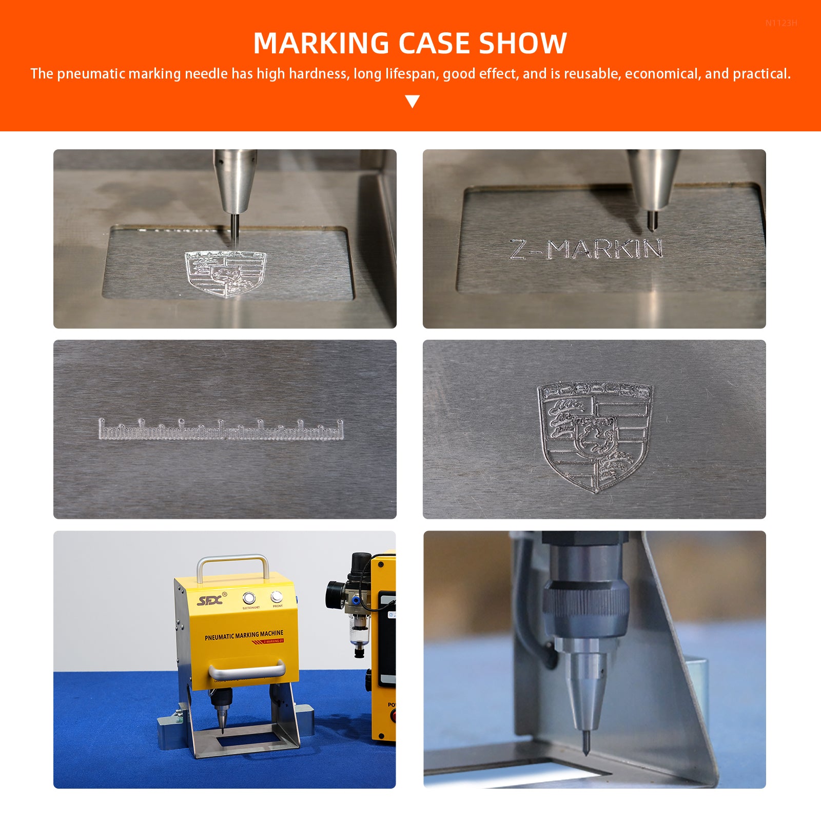 • Pneumatic Marking Needles can Print on Metal Workpieces with a Hardness within HRC60 and Hard Non-metals such as Plastic, Rubber, Bakelite, Hard Paper, etc.