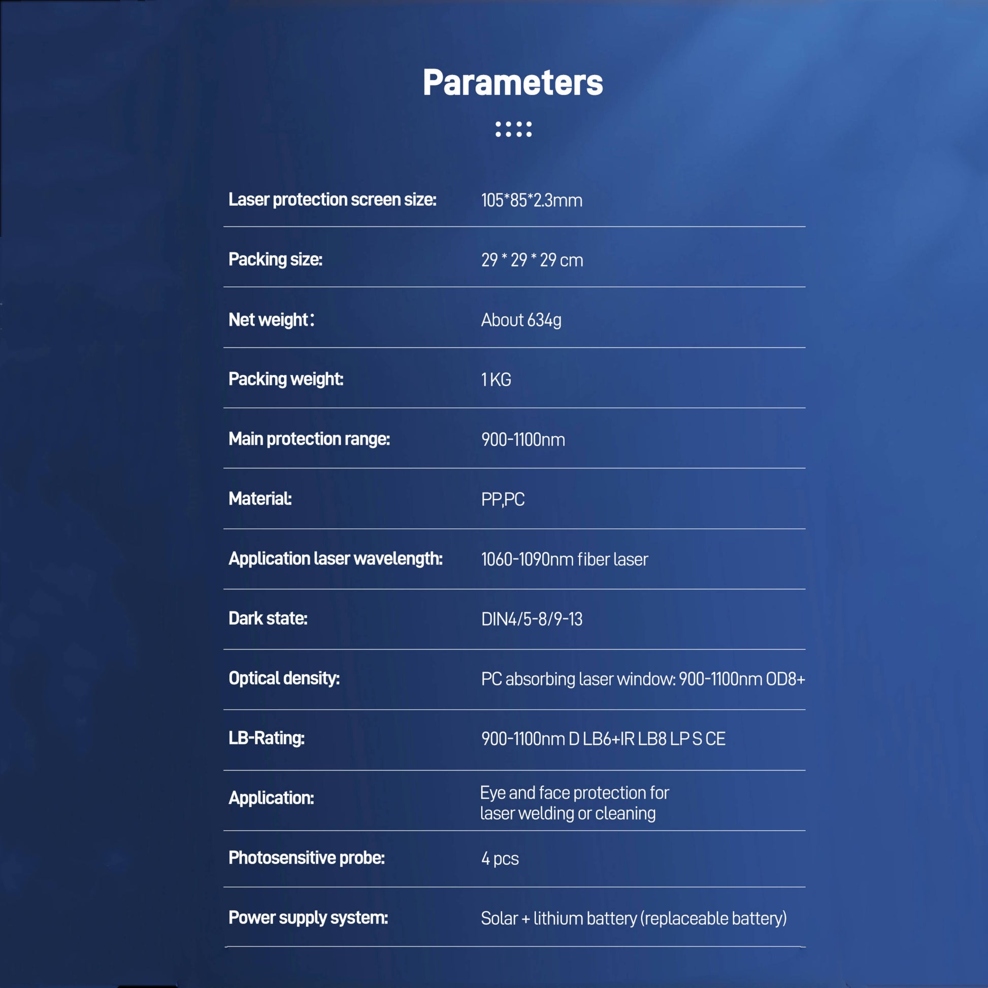 Main protection range: 900-1100nm