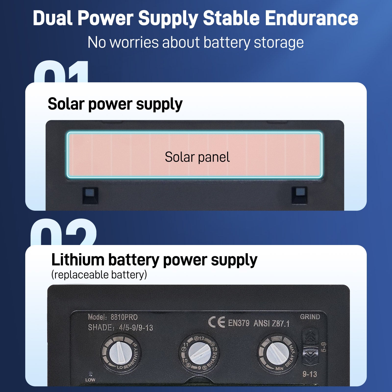 - No need to take off the helmet.180° free flip,check welding status at any time.