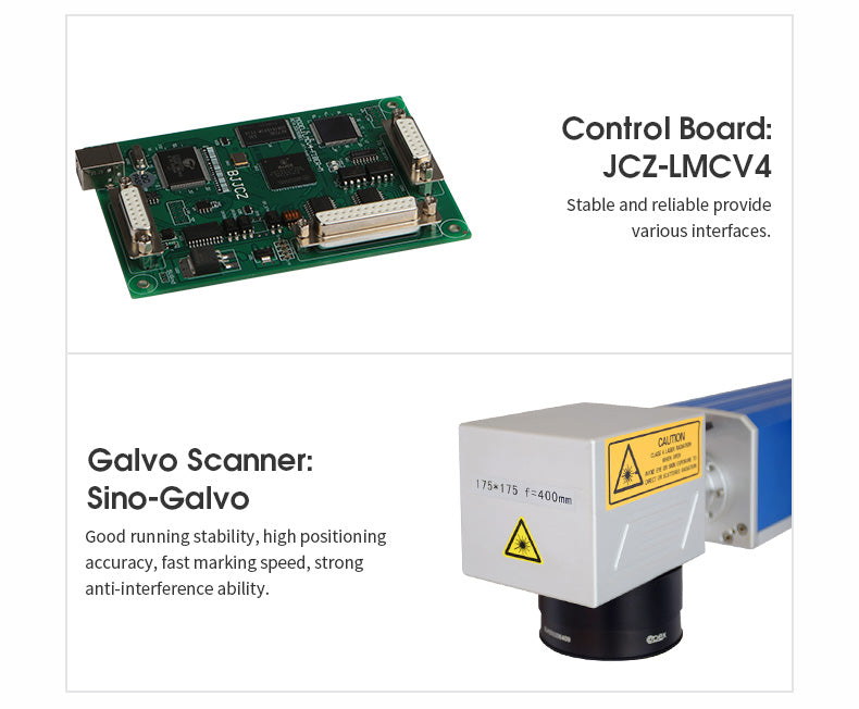 - High Quality Machine Parts: JPT MOPA M7 Laser Source, Jollystar & Opex F-Thea Len, JCZ-LMCV4 Control Board, Sino-Galvo Scanner.