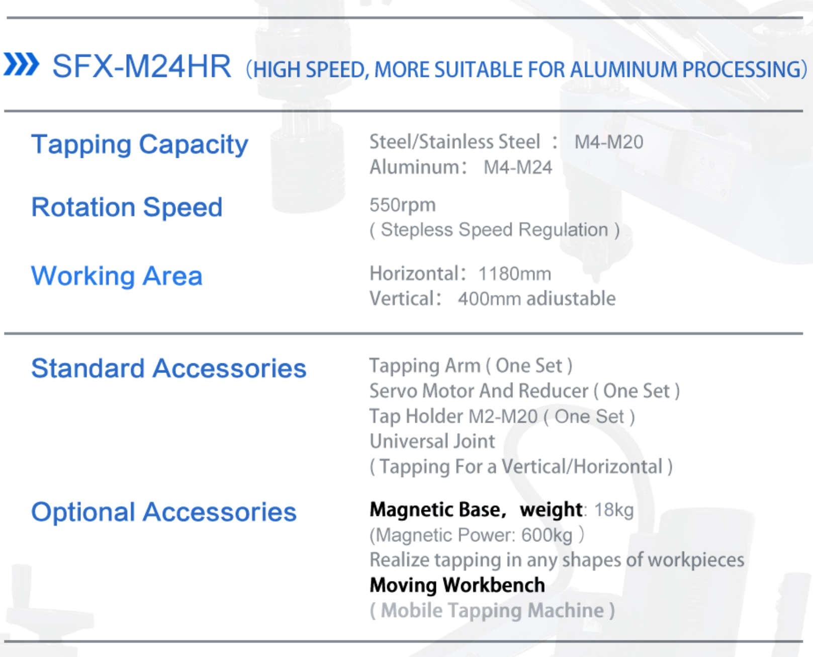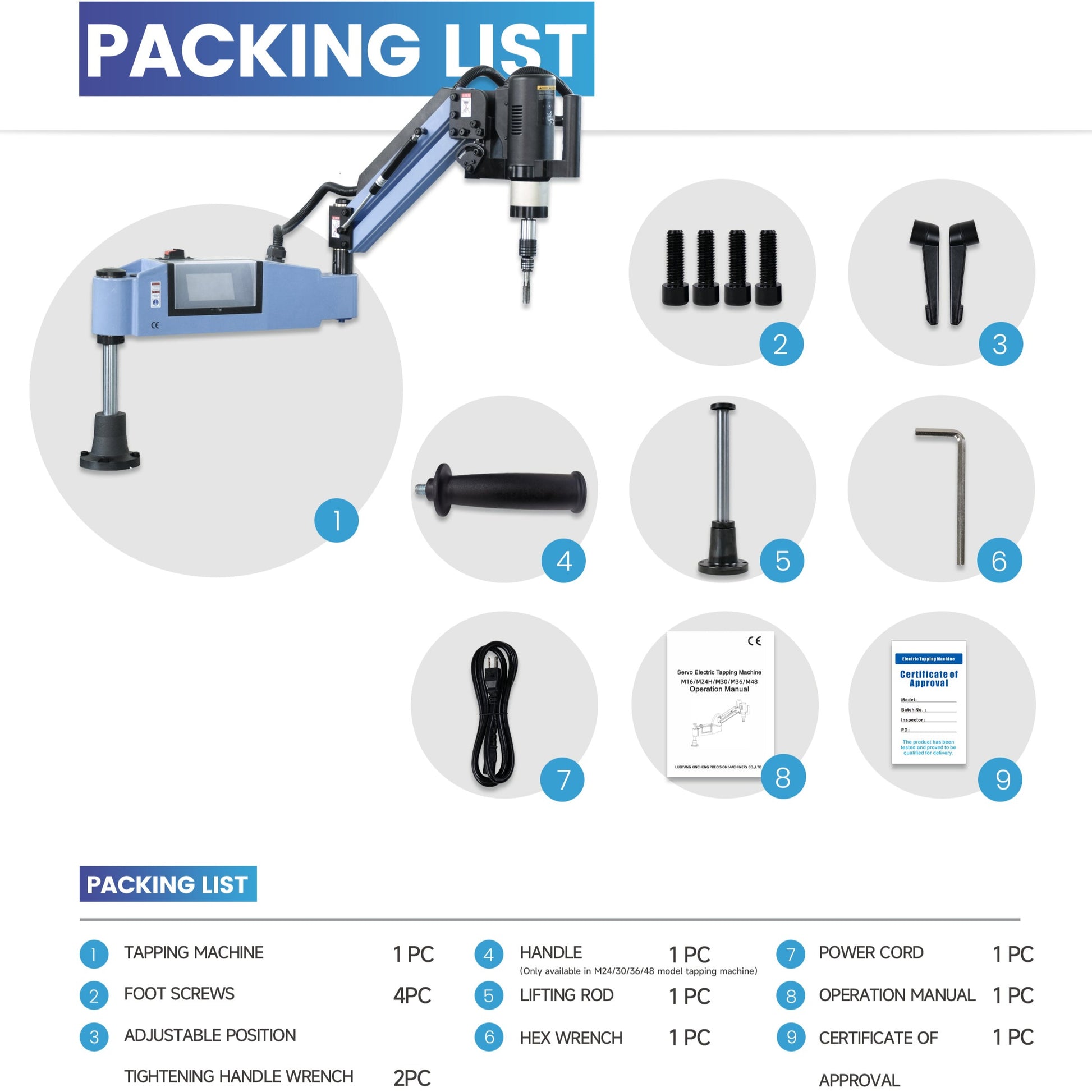 Electric Tapping Machine Universal 360° Flexible Tapping Arm Chuck Touch Screen with Collets M16R/M24HR/M30R/M36R/M48R